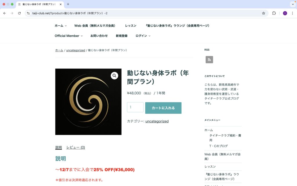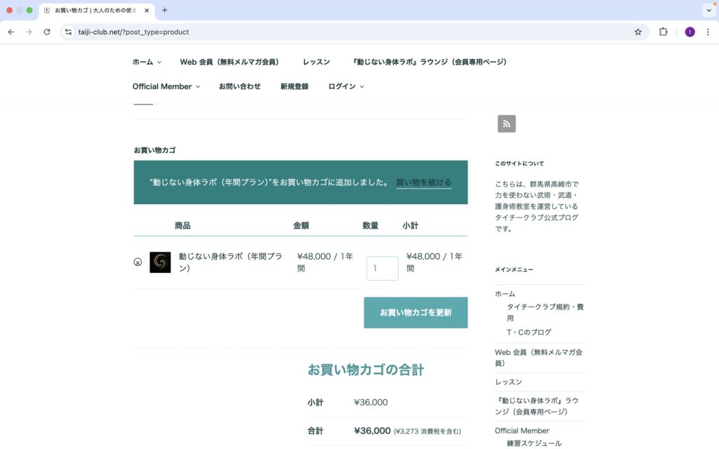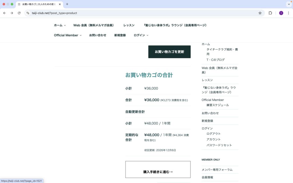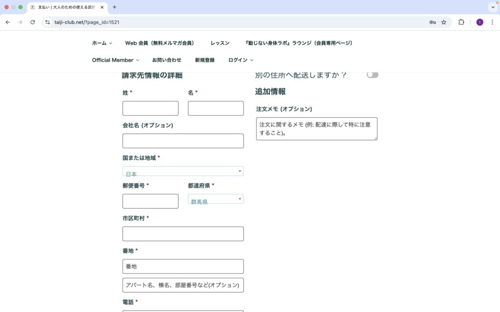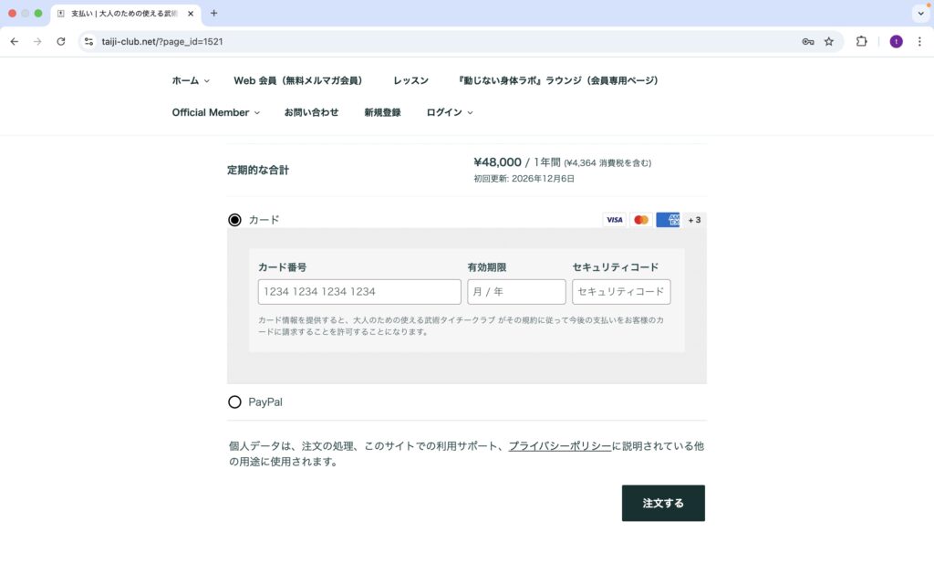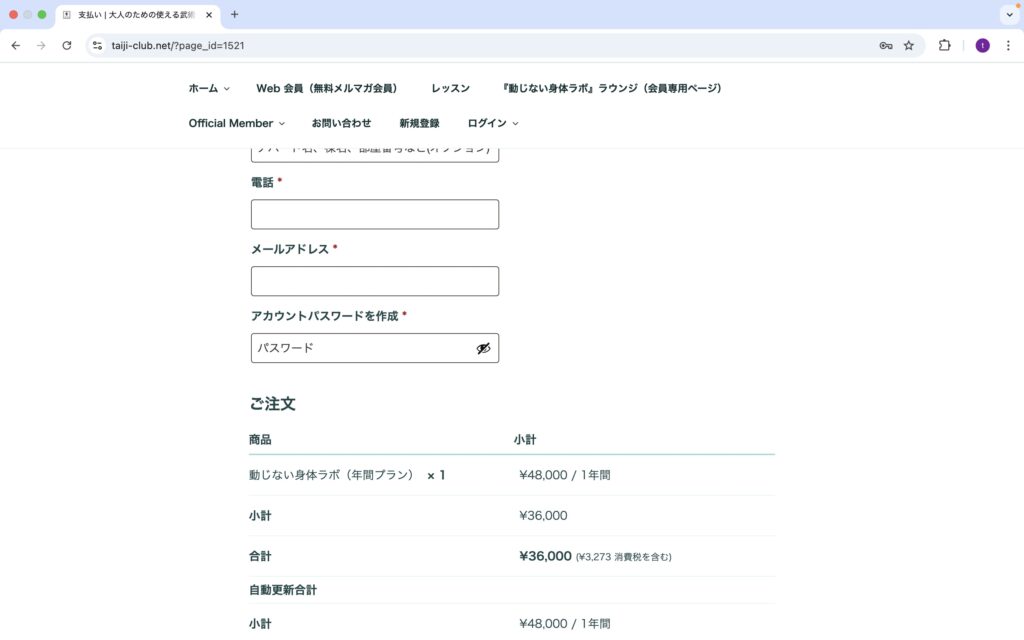 注文完了の画面が出れば完了です。すぐに「動じない身体ラボ」ラウンジページに入室いただけます。